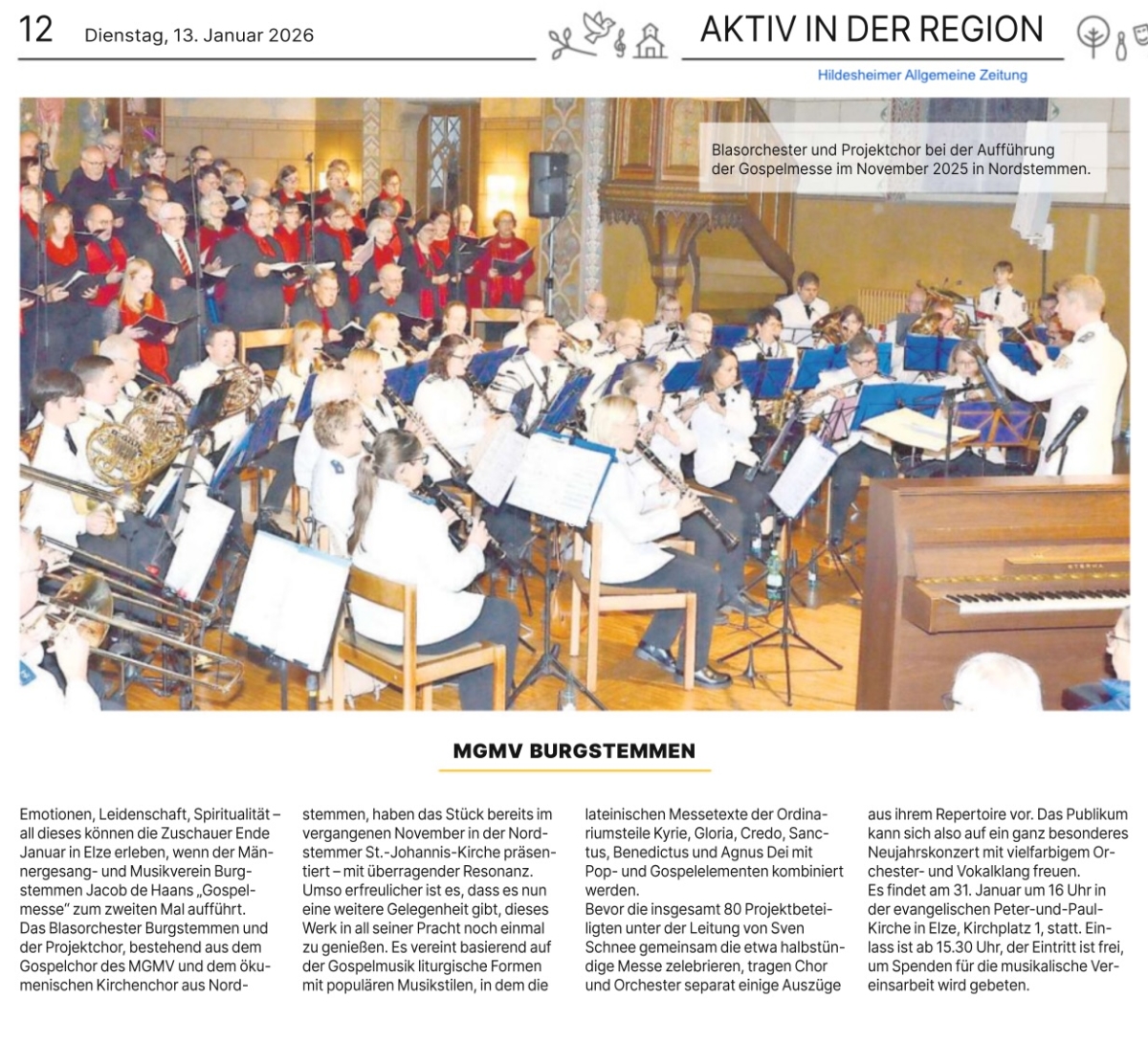 Ankündigung der Wiederholung der Gospelmesse in Elze